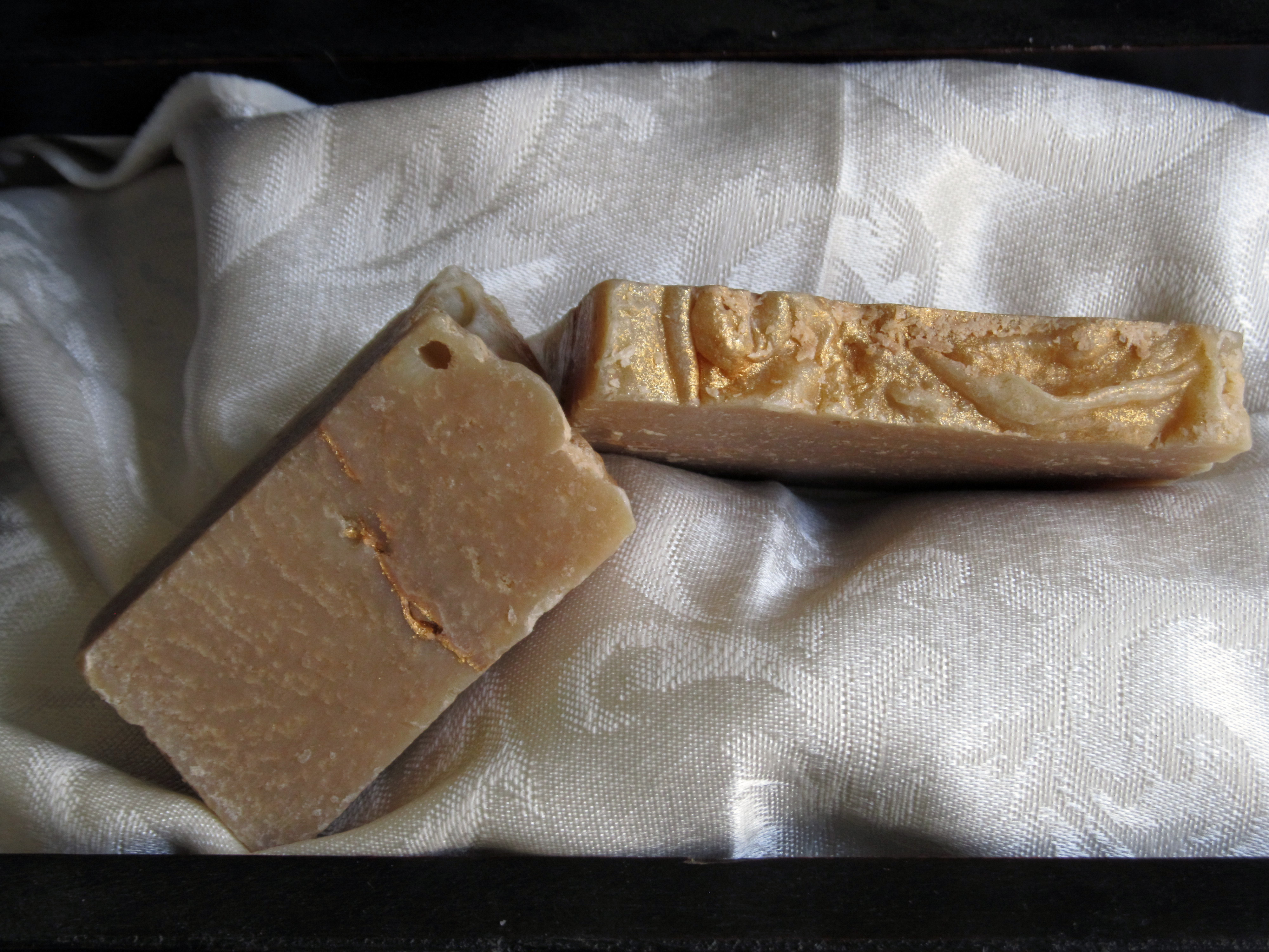 A beautiful bar of soap created with a warm, exotic blend of frankincense and myrrh as well as shea butter and then dusted with a touch of gold.